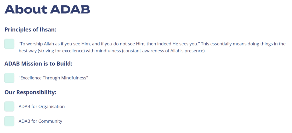 Our work covers areas that strengthen organisational and individual excellence in this world while nurturing values that prepare us for the Hereafter.